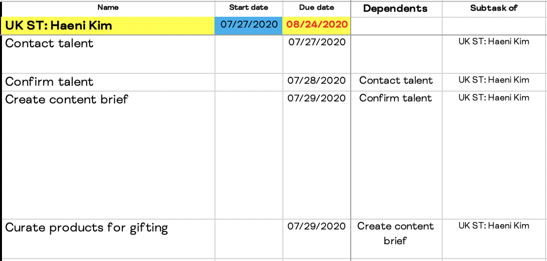 Hi, thanks for this but i’ve done exactly this and it doesn’t work for subtasks within a task in a project. Only seems to work for tasks within a project. i.e. in my screenshot above, ‘UK ST: Haeni Kim’ is a task in a project and all the other tasks are subtasks of ‘UK Haeni Kim’.