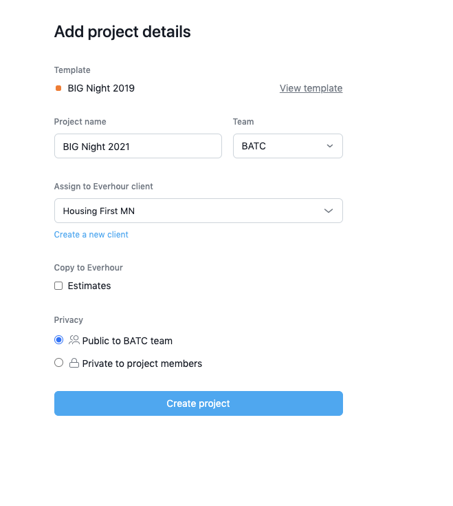 Chose a Project template, should have see a screen with the option to choose “next” but the only option was to “create project”, therefore missing the screen to add a new end date and have the dates automatically adjust.