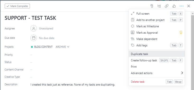 Duplicate a task.