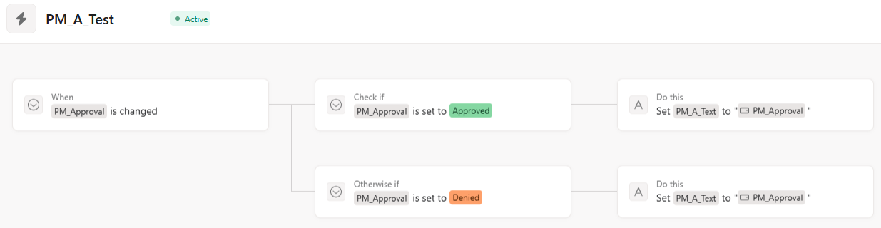What I’ve done so far is set up a single-select custom field called “PM Approval” with “Approved” and “Denied” as the options. I have the rule set up to send the form submitter an email, with the content of the email depending on which option the PM Approval field is set to. However, no matter how many tests I run, I can’t get the rule to get triggered. I update the PM Approval field for the task created by the form submission, but the rule doesn’t run.