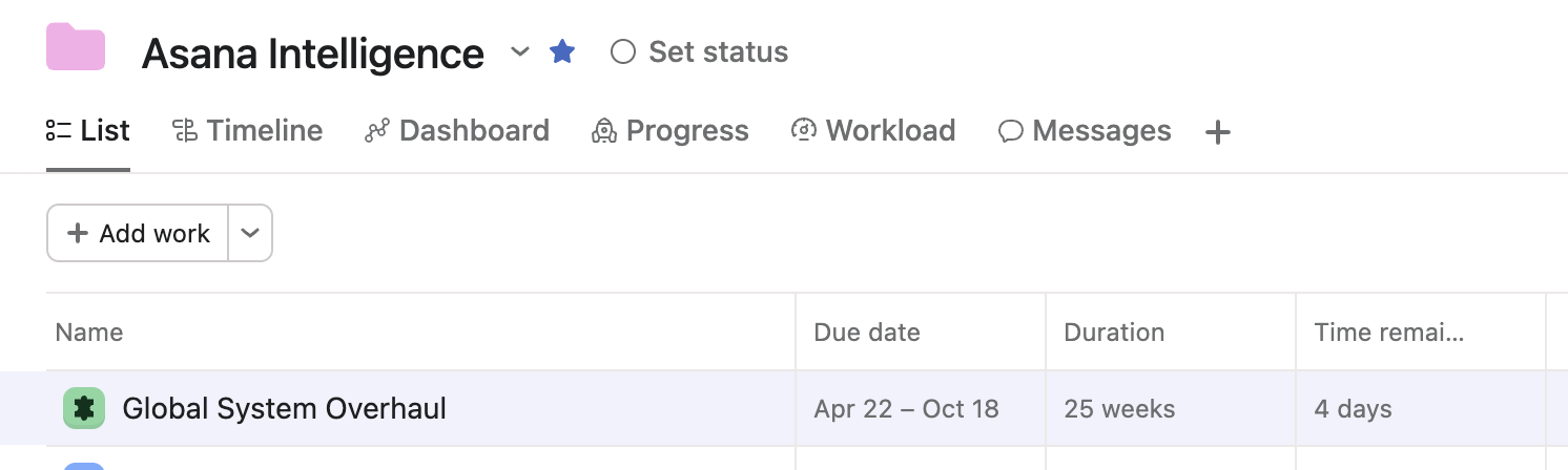 I need to track the time of projects within a portfolio from kickoff to launch. Projects are often added to the portfolio before official kickoff, so I do not just want time from project creation to completion. I’ve tried setting up widgets to count days in a Product Phase custom field & in the In Progress Asana Status update field to no avail. Appreciate any help.